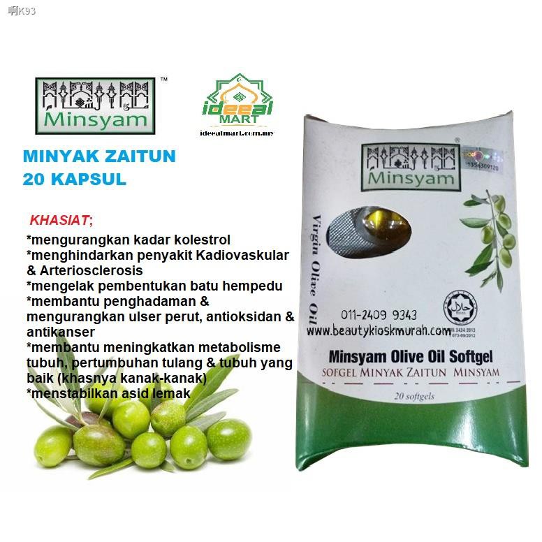 Sofgel minyak zaitun Minsyam dihasilkan melalui proses perahan sejuk cold press bagi mengekalkan kualiti minyak pada tahap tertinggi. RM 1250 RM 1125. MIinsyam Olive Oil Minyak Zaitun 24 Softgels.